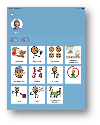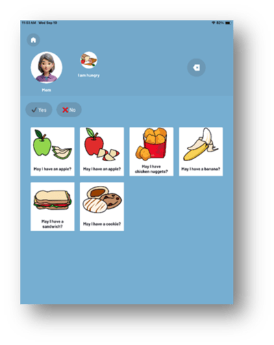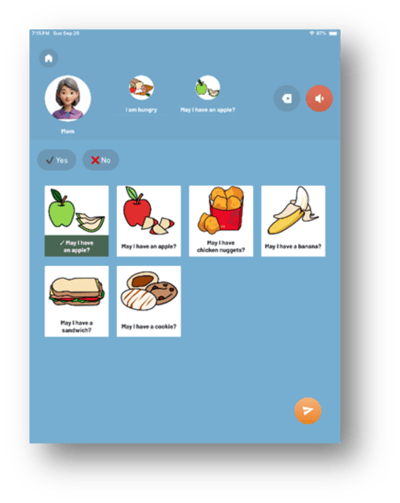 By combining these, a complete phrase is formed. The app then plays the selected phrase for the TippyTalker.