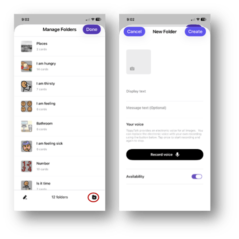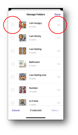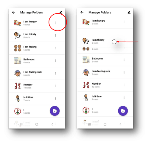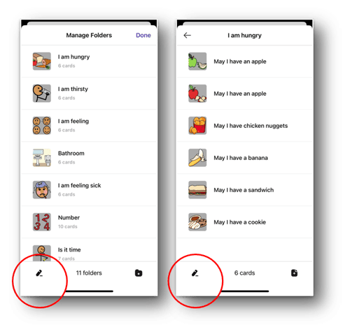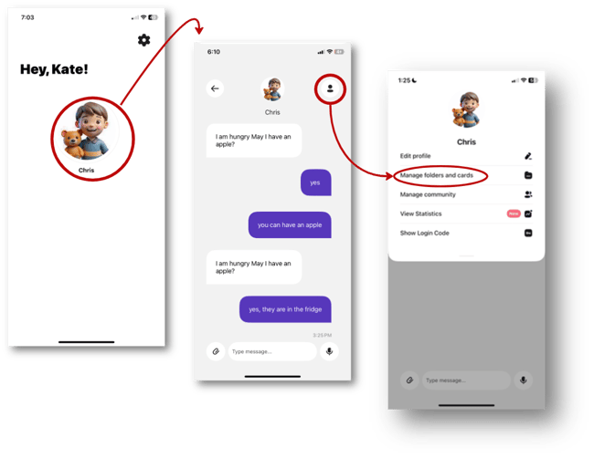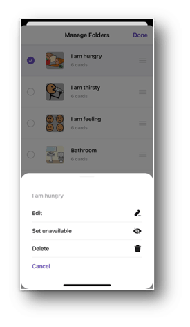 - To manage these folders and cards, select the TippyTalker’s profile on the home screen and then tap the button in the upper right corner. Then tap "Manage folders and cards"