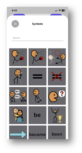- When selecting an image for a card or folder, you can search for symbols in the library using keywords in the search box.