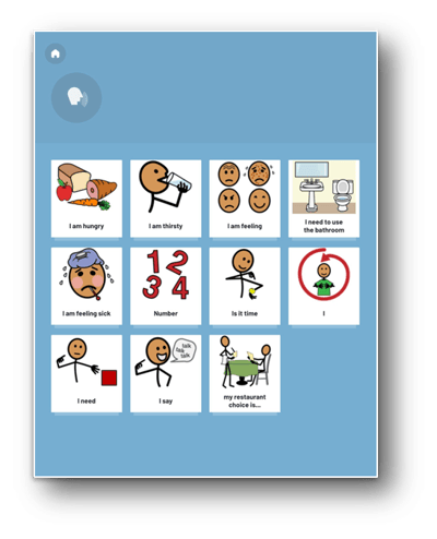 TippyTalk has customizable cards for the TippyTalker to communicate their thoughts. The cards are organized into folders, which are basically categories, such as "I am hungry." Cards and folders can be customized almost infinitely.