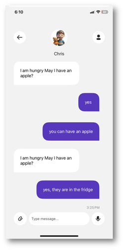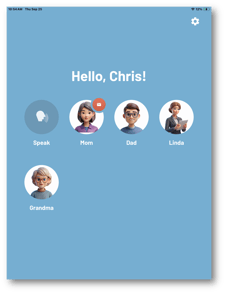 Chris, the TippyTalker sees that a message is received (the app will also vocalize this), and taps the Mom icon to hear the message: