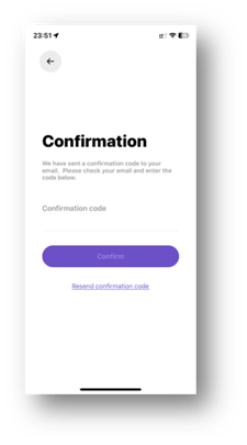 - Go back to the app and enter the confirmation code.