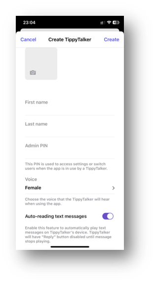 The Owner can view or change the PIN code from their mode in the TippyTalk phone app using the ‘Edit profile’ button in the TippyTalker’s management menu.