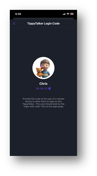 - On the phone, get the login code from the TippyTalker settings screen.