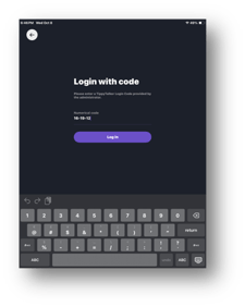 - On the iPad, tap Login with code at the bottom.